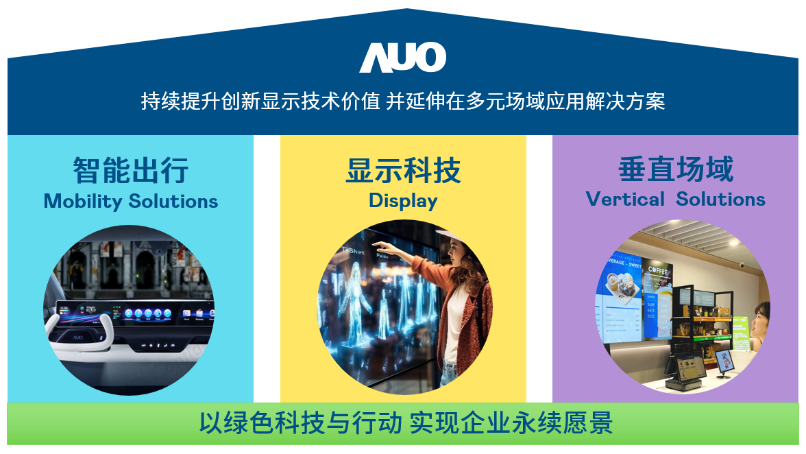 我们持续推动「双轴转型」,在精进显示技术附加价值(Go Premium),与深化垂直市场应用(Go Vertical)的策略下,对应金年会金字招牌信誉至上入口的优势竞争力与趋势,我们奠定显示科技、智慧移动、垂直场域三大永续营运支柱,在显示技术领域的根基之上,延伸布局多元场域应用解决方案。将先进显示科技助力智慧移动及垂直场域发展,并以绿色科技与行动为实践,在转型之路上贯彻永续经营之愿景。